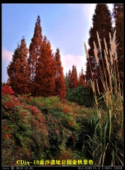 成都气候温暖,入冬秋色依然迷人。金沙遗址公园杉林红了,金黄银杏吸引人,白色芦苇婀娜摇弋,还有一串串彤红的小果。