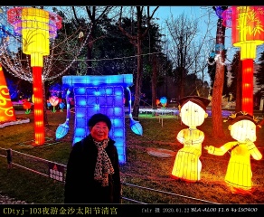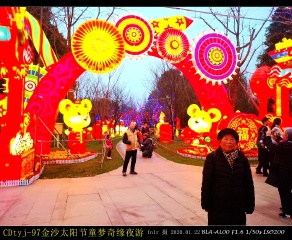 1月22日晚6时至6时半,金沙太阳节的灯组陆续开灯,流光异彩,绚丽多姿。